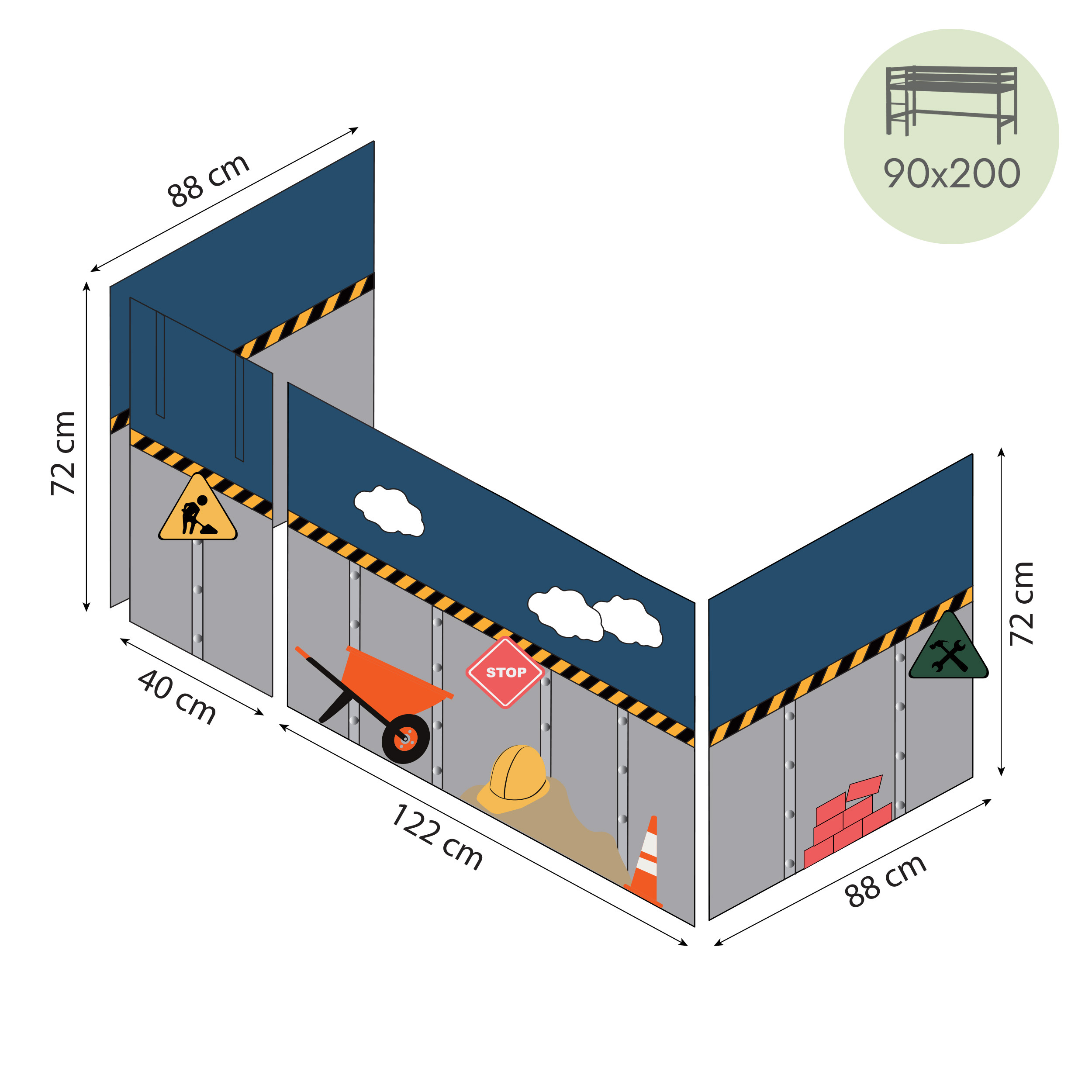 Verhot puolikorkeaan sänkyyn ja kerrossänkyyn 90x200cm - Construction